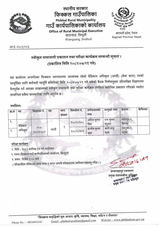 स्वीकृत नामावली प्रकाशन र परीक्षा कार्यक्रम सम्बन्धी सूचना