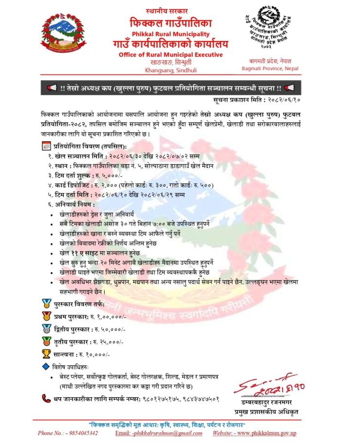 Home » तेस्रो अध्यक्ष कप (खुल्ला पुरुष) फुटबल प्रतियोगिता सञ्चालन सम्बन्धी सूचना ।