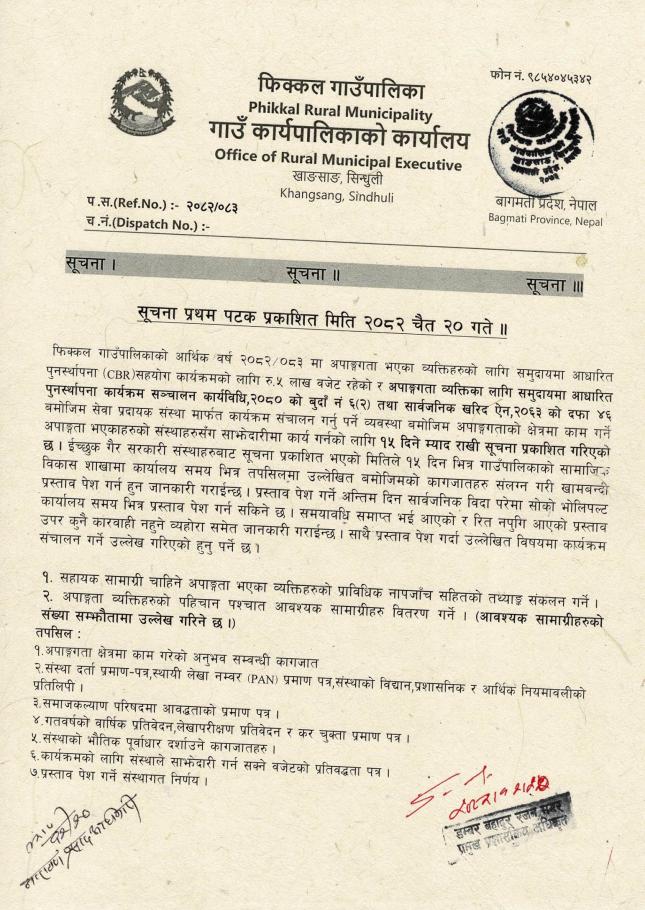 ॥अपाङ्गता लक्षित काम गर्ने संस्थाहरुसँग साझेदारीमा कार्य गर्ने सम्बन्धी सूचना॥