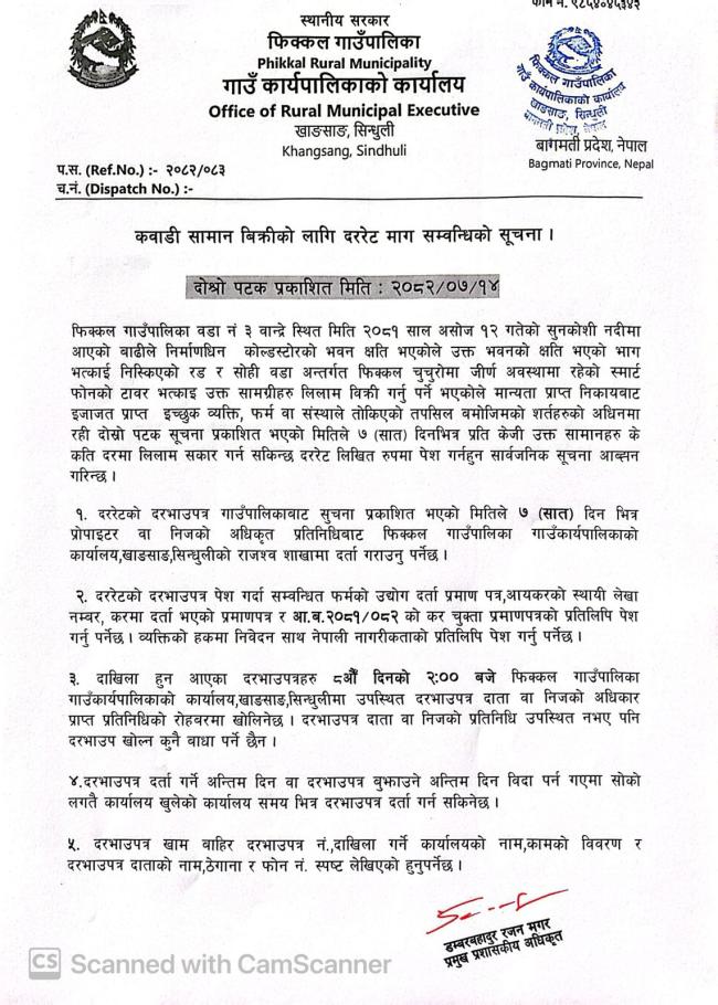 Home » ॥ कवाडी सामान बिक्रीको लागि दररेट माग सम्बन्धीको सूचना ॥