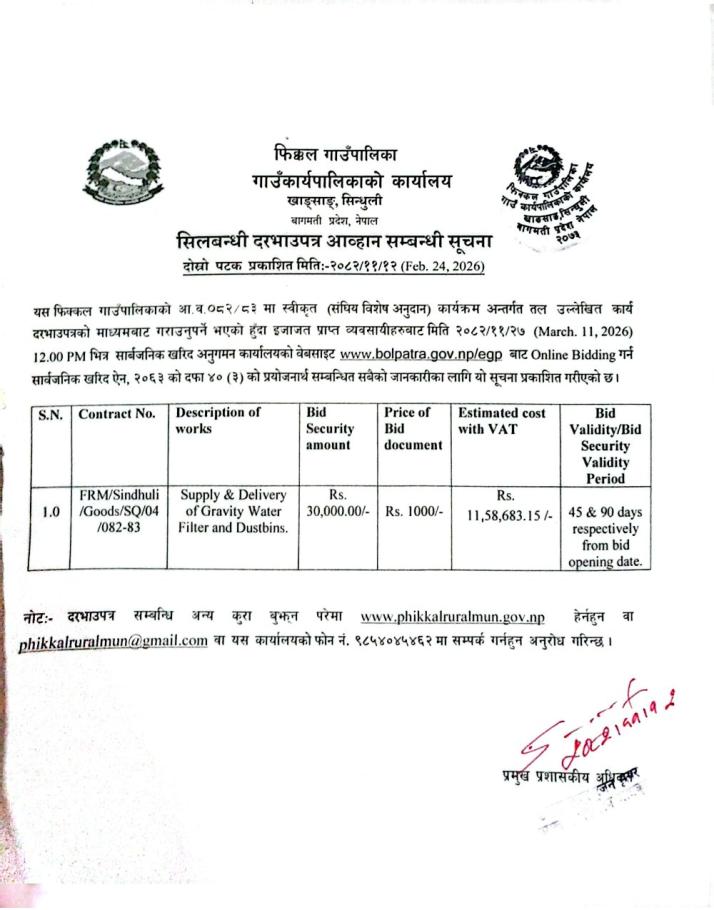 Home » ॥ सिलबन्दी दरभाउपत्र आव्हान सम्बन्धी सूचना ॥